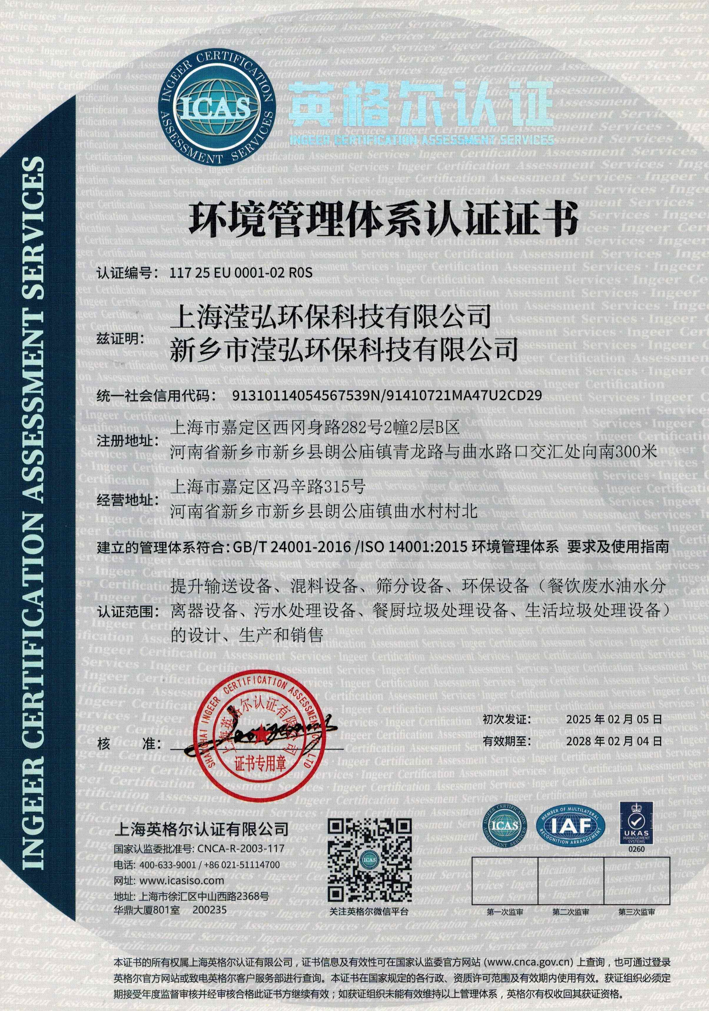 環(huán)境管理體系認(rèn)證證書